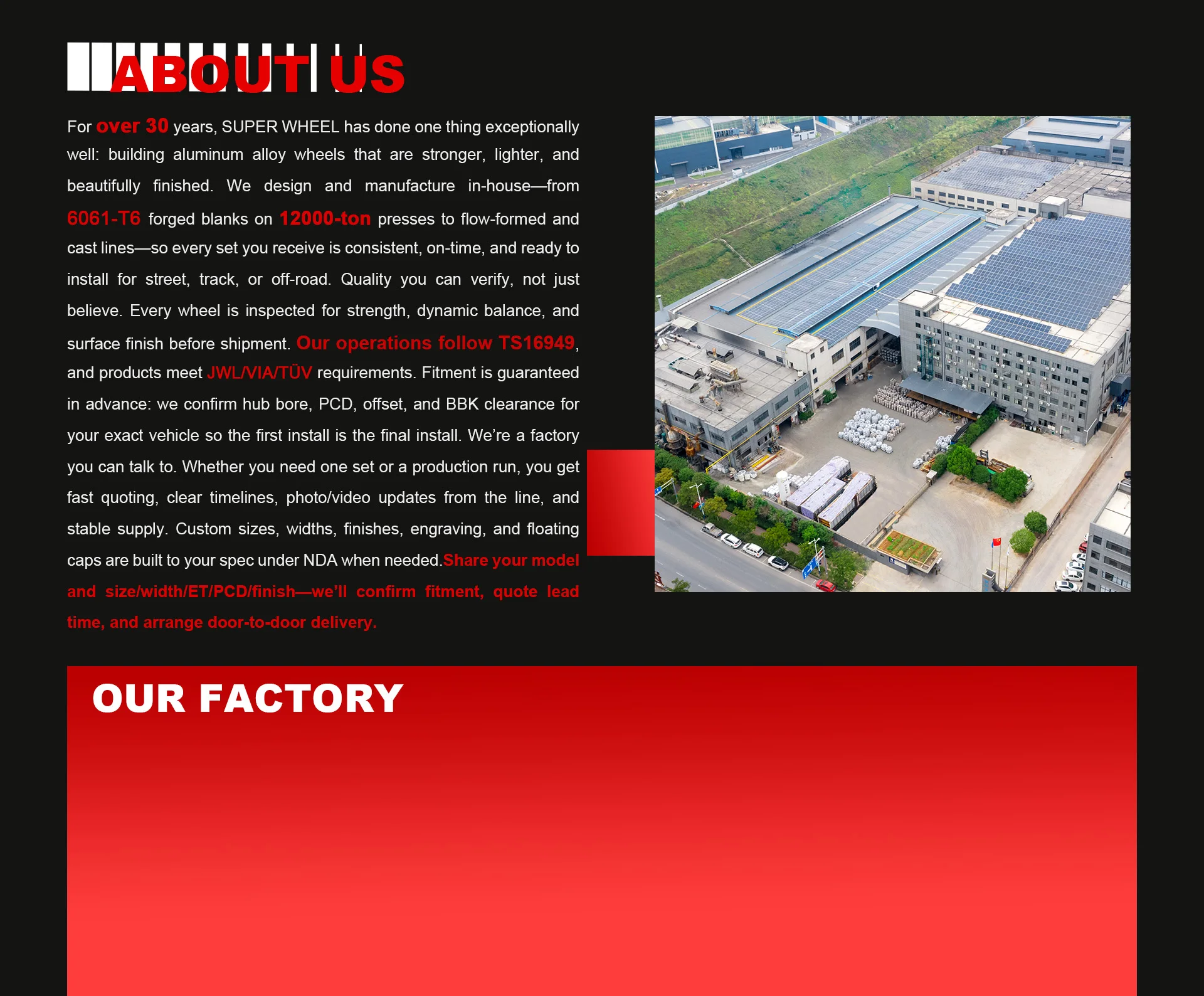 1. Over 30 years of expertise in developing and manufacturing aluminum wheels.